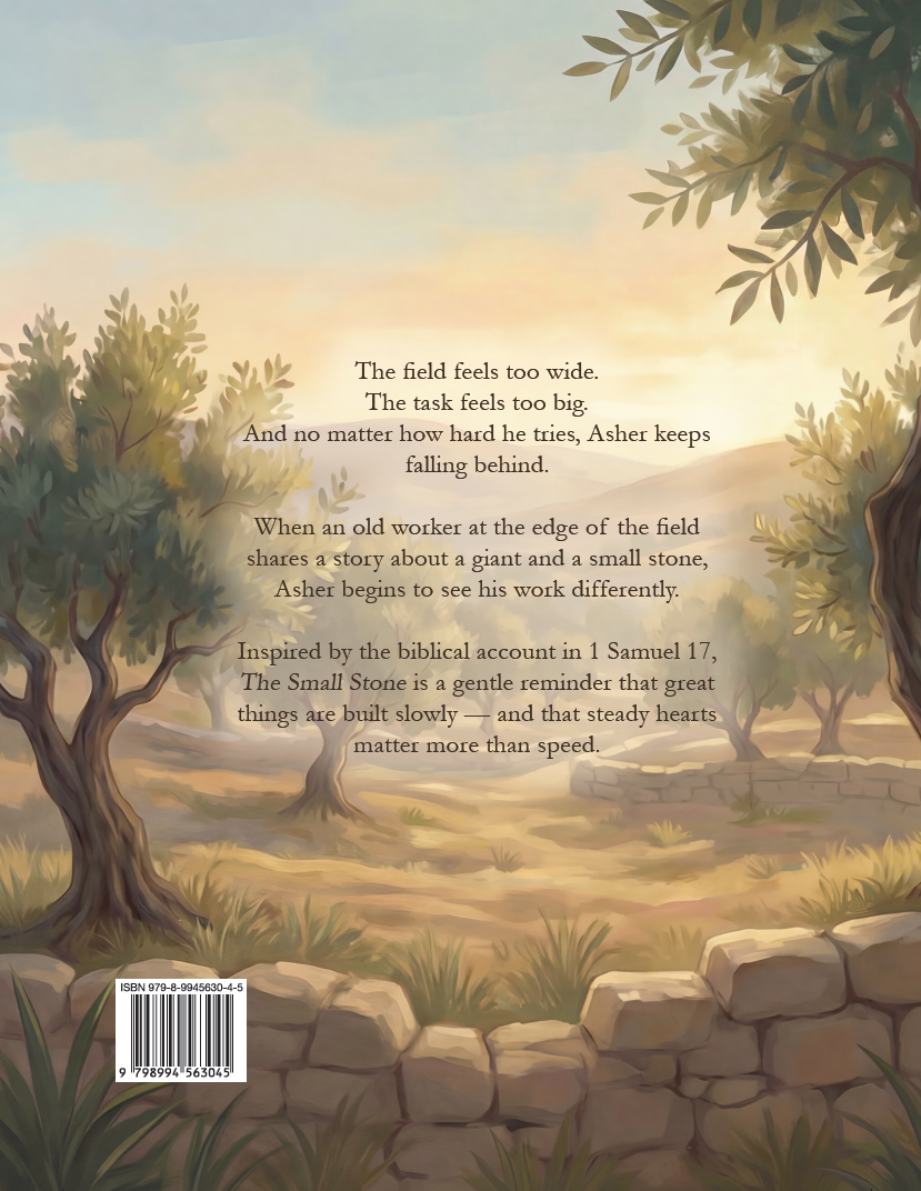 Inspired by the biblical account in 1 Samuel 17, The Small Stone gently reimagines the story of David and Goliath through the eyes of a child who feels small in a very big world. With warm illustrations and thoughtful storytelling, this book explores perseverance, steady effort, and the quiet strength found in simply continuing.